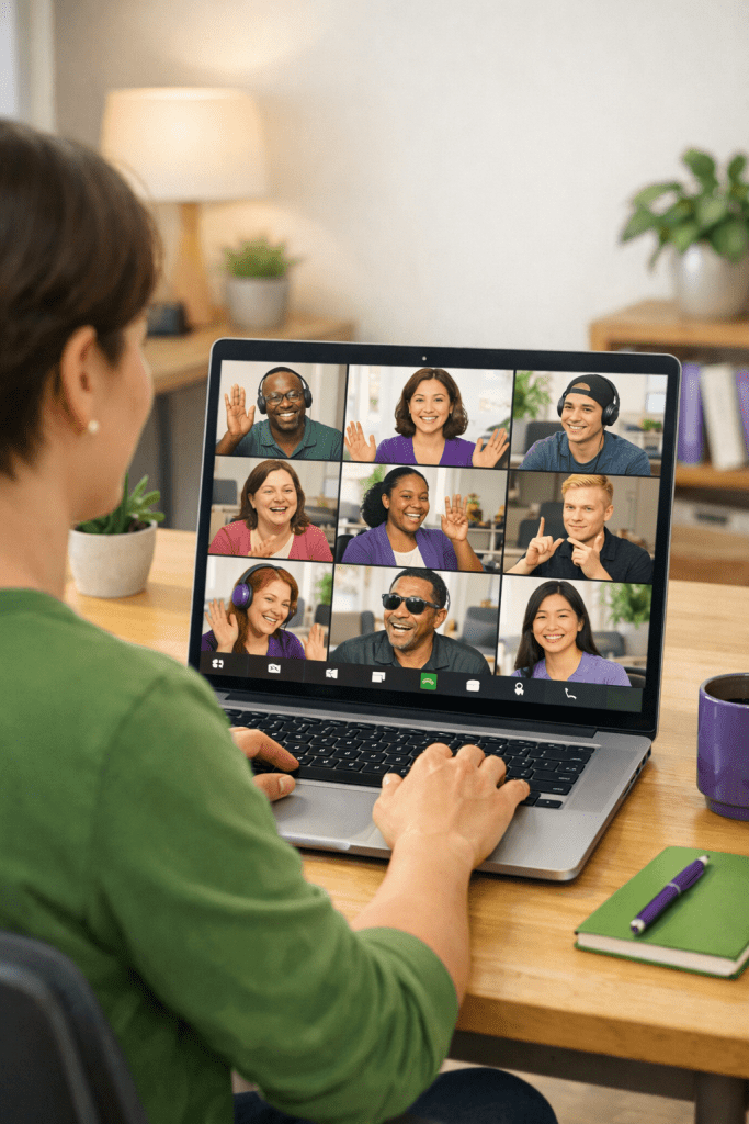 Toutes les activités se déroulent dans un environnement virtuel sécurisant et bienveillant. L’animation est assurée par des personnes formées, attentives aux besoins individuels et prêtes à adapter le rythme, les consignes et les outils utilisés afin que chaque participant puisse s’engager à sa façon.
